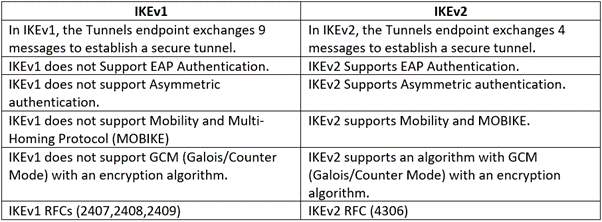 IKEv2 is better than IKEv1. Below mentioned are the basic differences between IKEv1 and IKEv2.